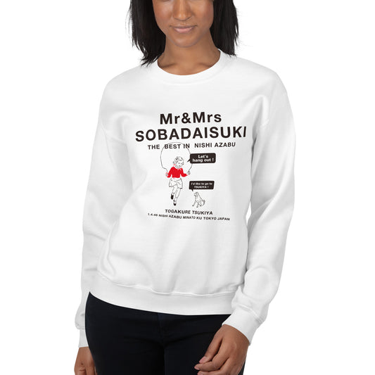 そば大好き/戸隠つきやオリジナルアイテム レトロデザイン ユニセックス トレーナー/ホワイト 送料及び税込