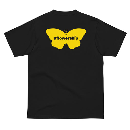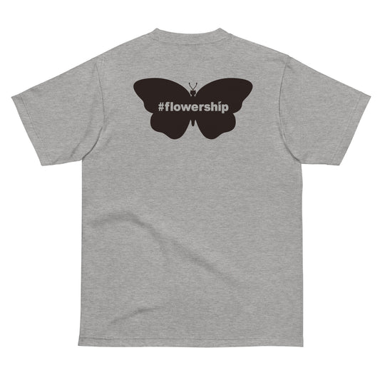 #FLOWERSHIP バタフライデザイン ユニセックス 半袖Tシャツ・ダークカラー